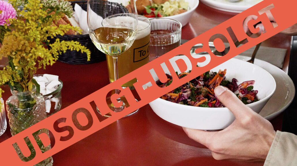 BEMÆRK: Vi anbefaler, at du ankommer lidt tidligere, så du kan nå at købe drikkevarer i baren, inden middagen starter.